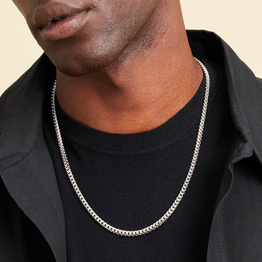 Our silver chains are crafted using 925 sterling silver coated in rhodium, which gives them brilliant shine and durability. Rhodium has been favored for jewelry for its luxurious sheen, value, and rarity.