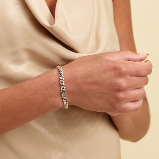 Our silver chains are crafted using 925 sterling silver coated in rhodium, which gives them brilliant shine and durability. Rhodium has been favored for jewelry for its luxurious sheen, value, and rarity.